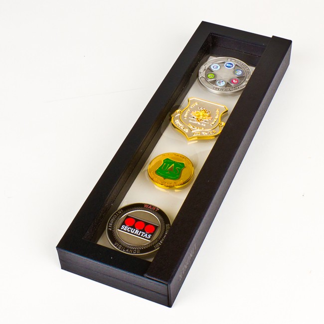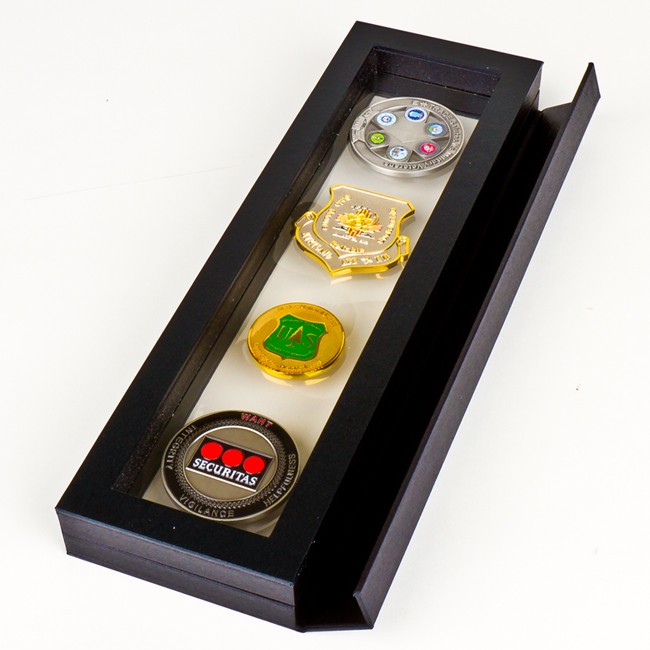 This unique 10.4″ x 2.4″ x 1″ floating coin frame displays up to 4 coins that appear to “float” in space, firmly held in place between two clear silicone membranes that safely display your favorite coins with ease! Currently available in black.