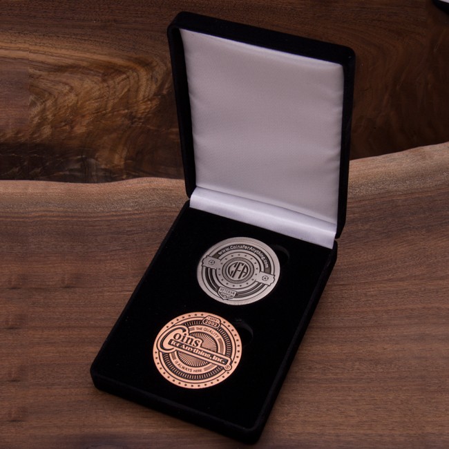This quality black velvet box holds two 1.75″ coins, or two 2″ coins, and is great for displaying two collectible coins together!
