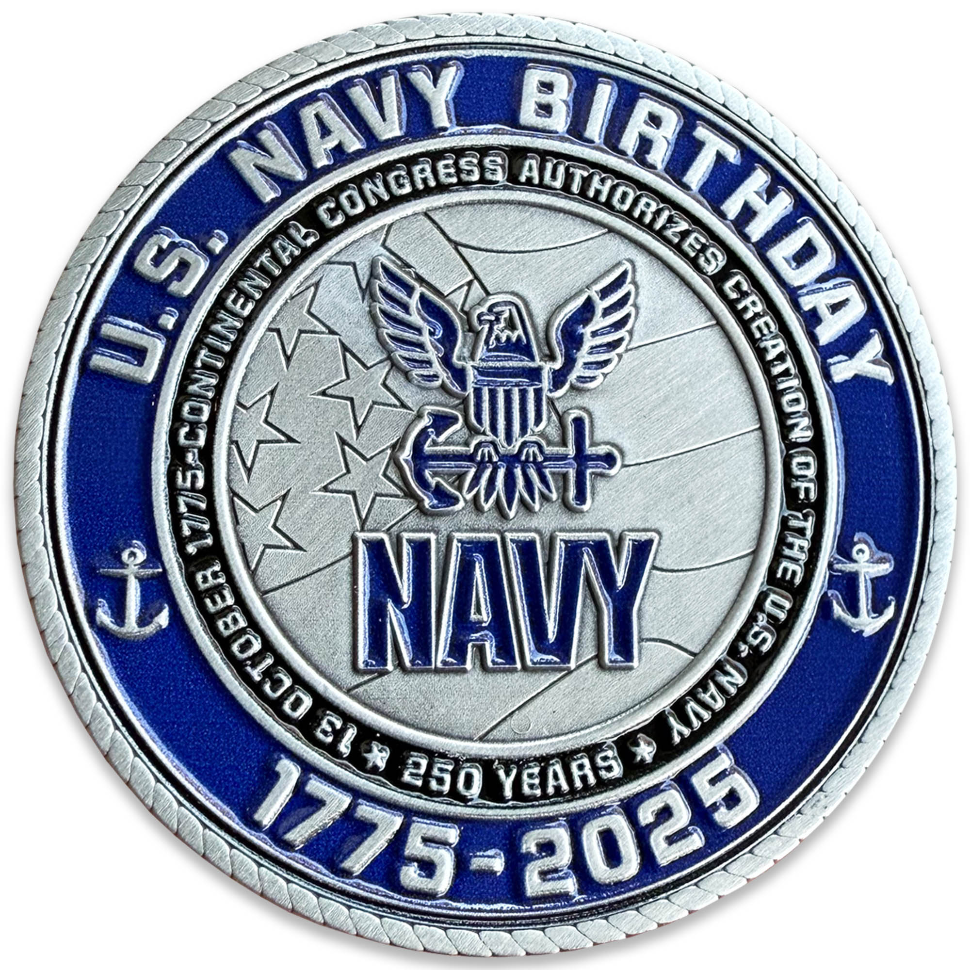2025 U.S. Navy Birthday Challenge Coin – 250 Years of Service!