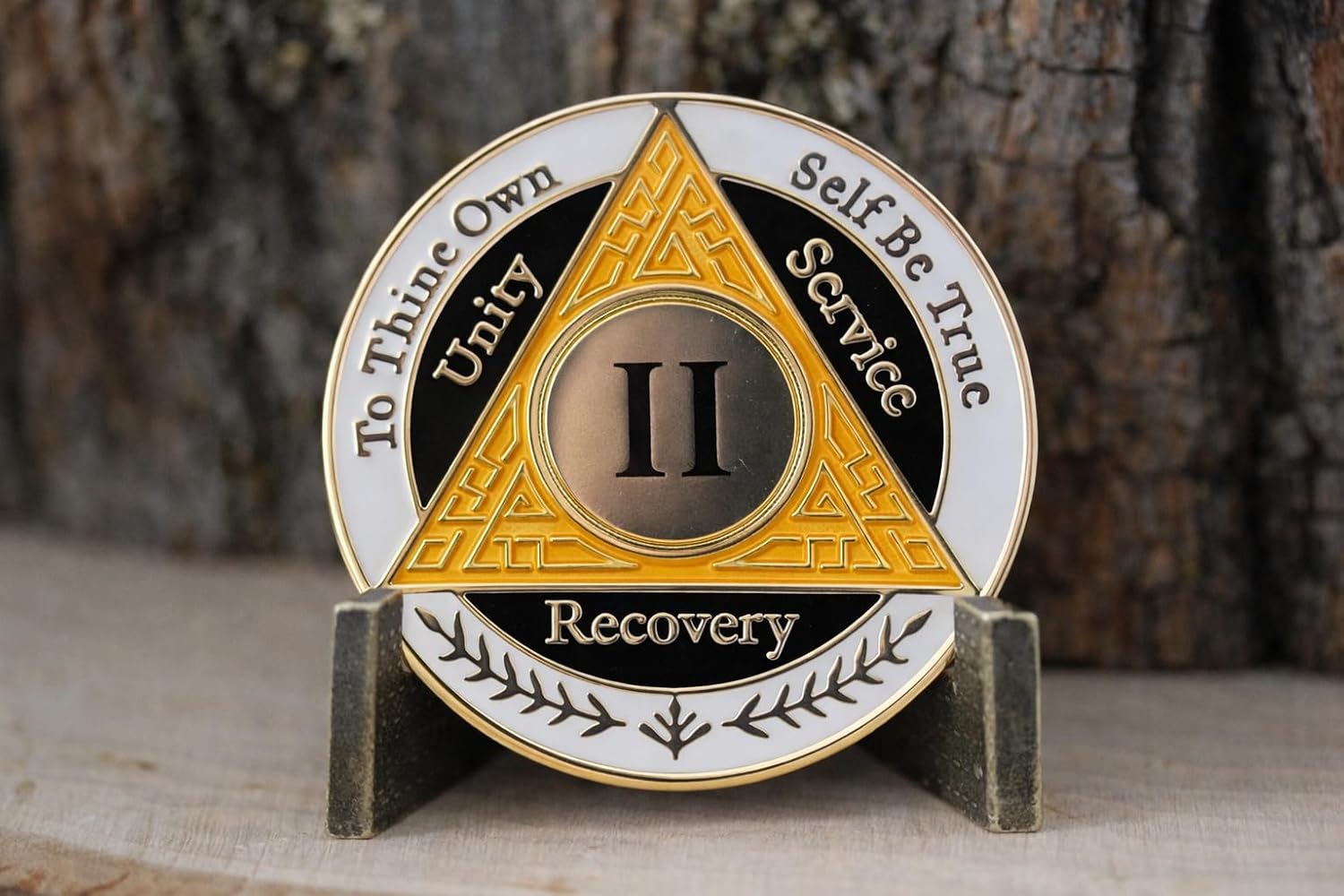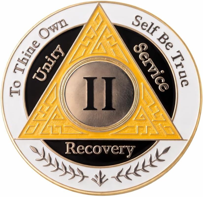 Celebrate and honor your 2-year sobriety milestone with this beautifully crafted AA coin in striking orange, white, and black colors. This recovery medallion serves as a powerful symbol of your dedication to sobriety and personal growth. The tri-color design features bold contrasting hues that make this coin both meaningful and visually distinctive. Perfect for carrying as a daily reminder of your journey or displaying as a treasured keepsake, this coin represents 24 months of strength and perseverance. The durable construction ensures this meaningful token will continue to inspire and motivate. Whether for yourself or as a thoughtful gift for someone marking their second year of recovery, this AA coin stands as a tangible reminder of this significant achievement.