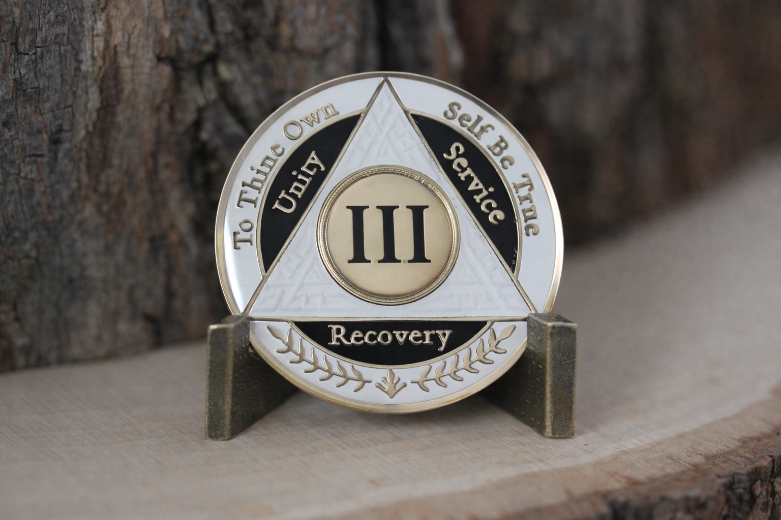 Celebrate a decade of sobriety with this meaningful 3-year AA recovery coin featuring a striking white and black color scheme. This commemorative medallion serves as a powerful symbol of dedication and perseverance on the journey to recovery. The dual-color design makes this coin both visually appealing and deeply significant, perfect for marking this important milestone. Each coin is crafted with attention to detail, making it a cherished keepsake for both the recipient and those who support them. The coin's size makes it convenient to carry as a daily reminder of commitment and strength. Whether displayed proudly or kept close as a personal touchstone, this AA coin represents three years of transformation and hope.