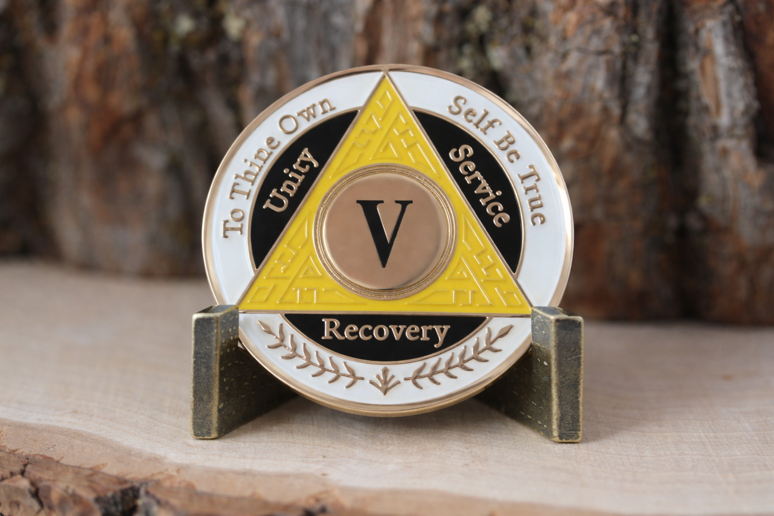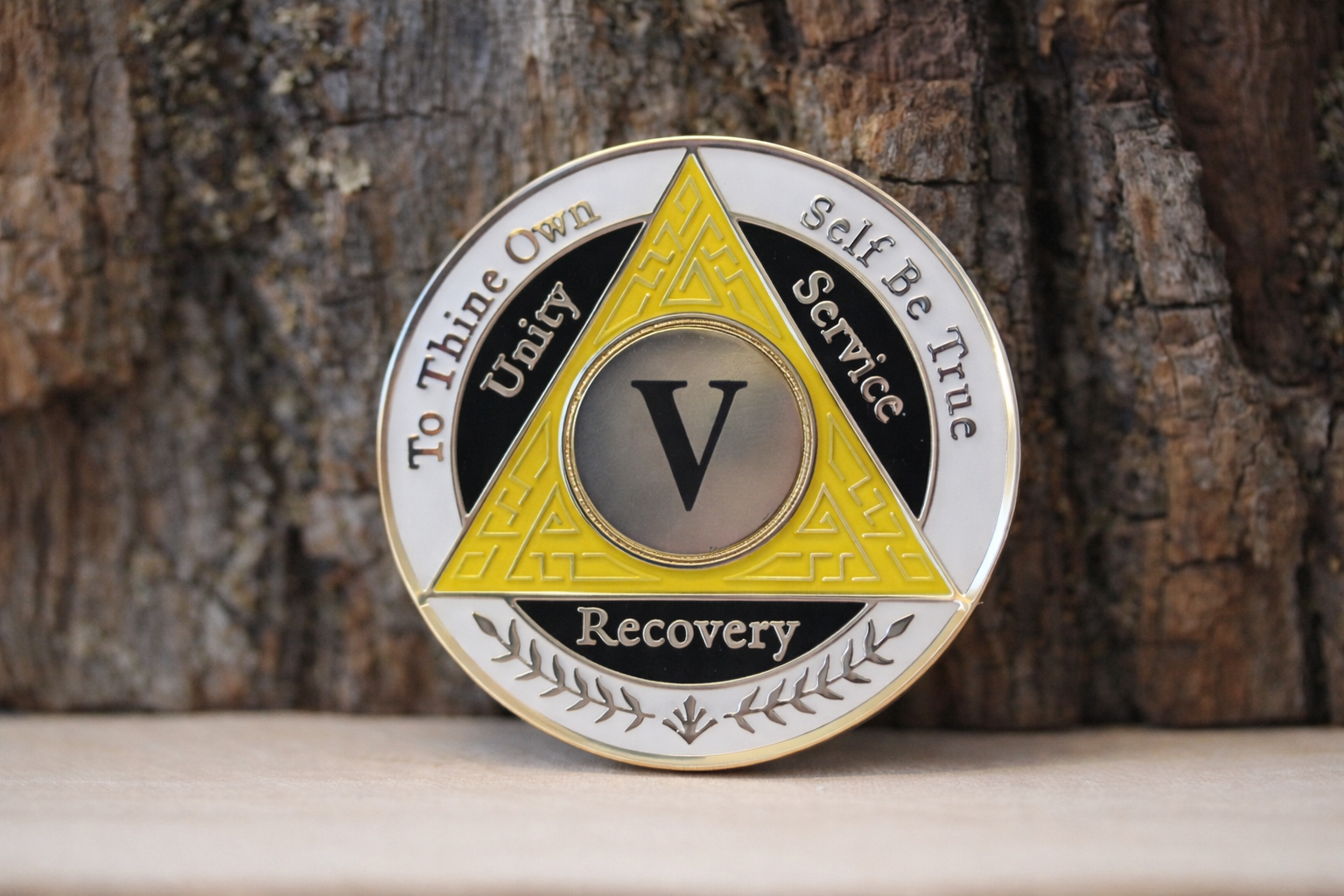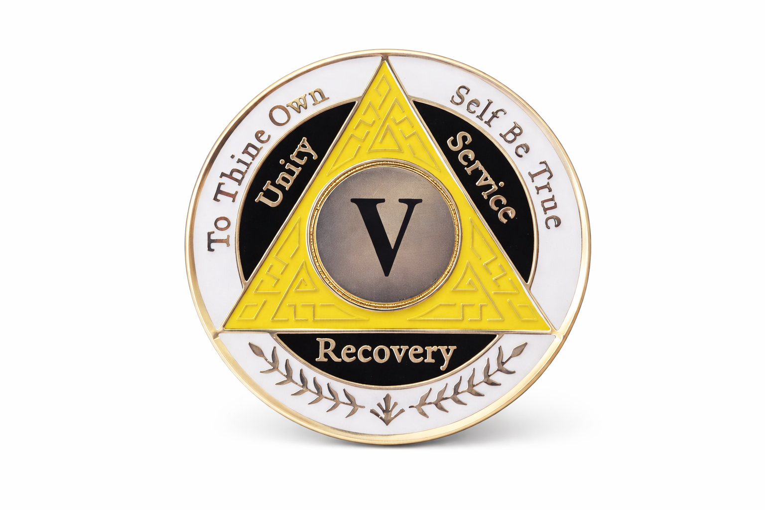 Celebrate a decade of sobriety with this meaningful 5-year AA recovery coin featuring a striking yellow, white, and black color scheme. This commemorative medallion serves as a powerful symbol of dedication and perseverance on the journey to recovery. The tri-color design makes this coin both visually appealing and deeply significant, perfect for marking this important milestone. Each coin is crafted with attention to detail, making it a cherished keepsake for both the recipient and those who support them. The coin's size makes it convenient to carry as a daily reminder of commitment and strength. Whether displayed proudly or kept close as a personal touchstone, this AA coin represents 5 years of transformation and hope.