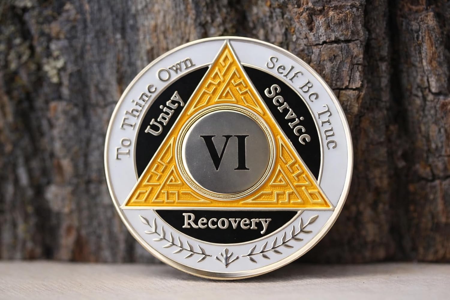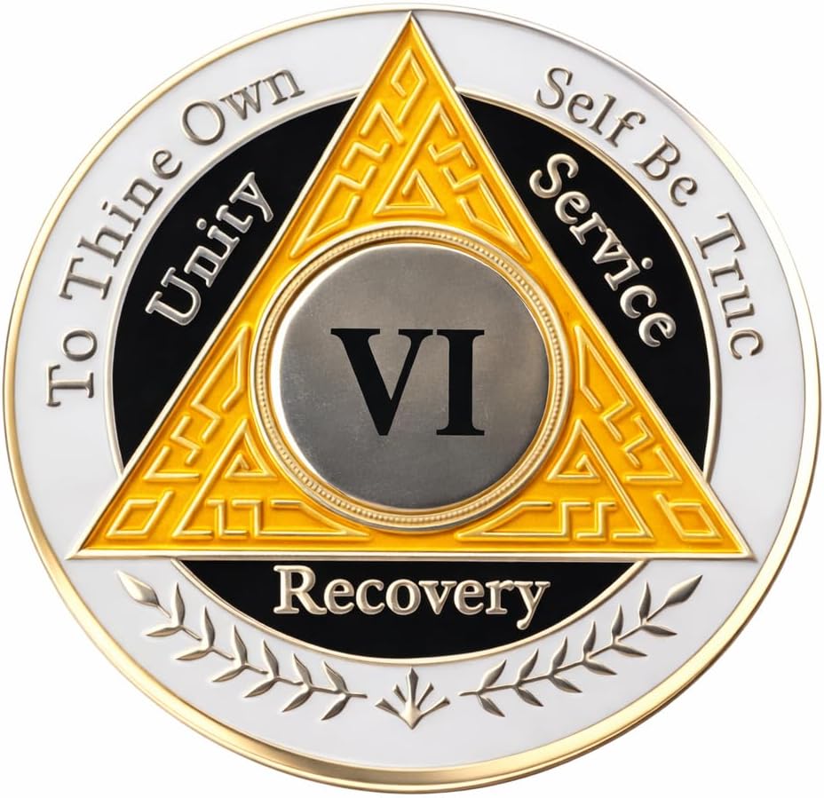 Celebrate six years of sobriety and recovery with this distinctive AA coin featuring a striking orange, white, and black color scheme. This commemorative medallion serves as a meaningful token of your journey and dedication to maintaining sobriety. Perfect for marking this significant milestone, the coin's tri-color design makes it both eye-catching and symbolic. The durable construction ensures this cherished memento will last for years to come, while its convenient size allows for easy carrying in a pocket or wallet. Whether for personal use or as a thoughtful gift for someone reaching this remarkable achievement, this 6-year AA coin stands as a powerful reminder of strength, perseverance, and hope in recovery.