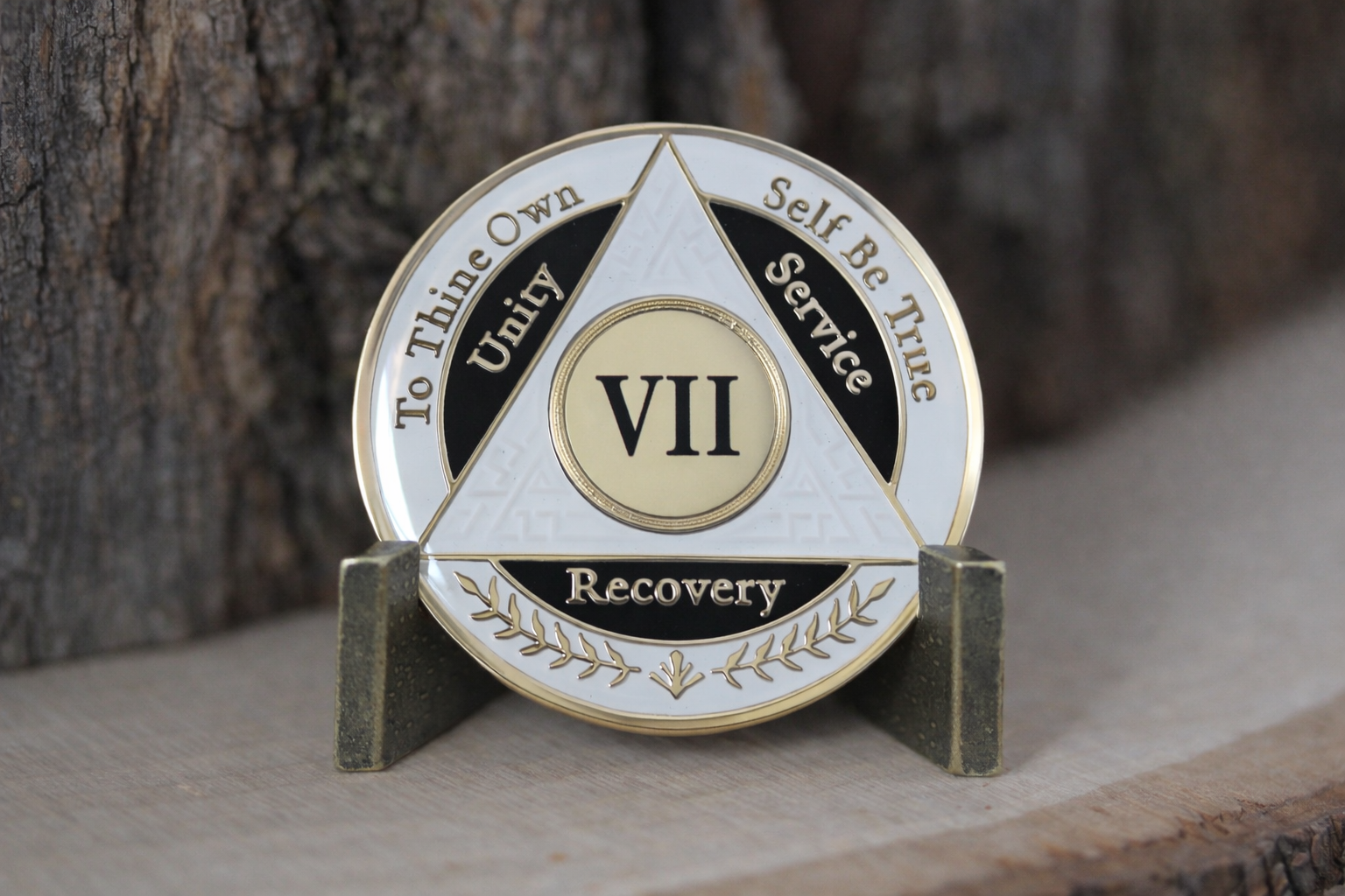 Celebrate a decade of sobriety with this meaningful 7-year AA recovery coin featuring a striking white and black color scheme. This commemorative medallion serves as a powerful symbol of dedication and perseverance on the journey to recovery. The tri-color design makes this coin both visually appealing and deeply significant, perfect for marking this important milestone. Each coin is crafted with attention to detail, making it a cherished keepsake for both the recipient and those who support them. The coin's size makes it convenient to carry as a daily reminder of commitment and strength. Whether displayed proudly or kept close as a personal touchstone, this AA coin represents 7 years of transformation and hope.