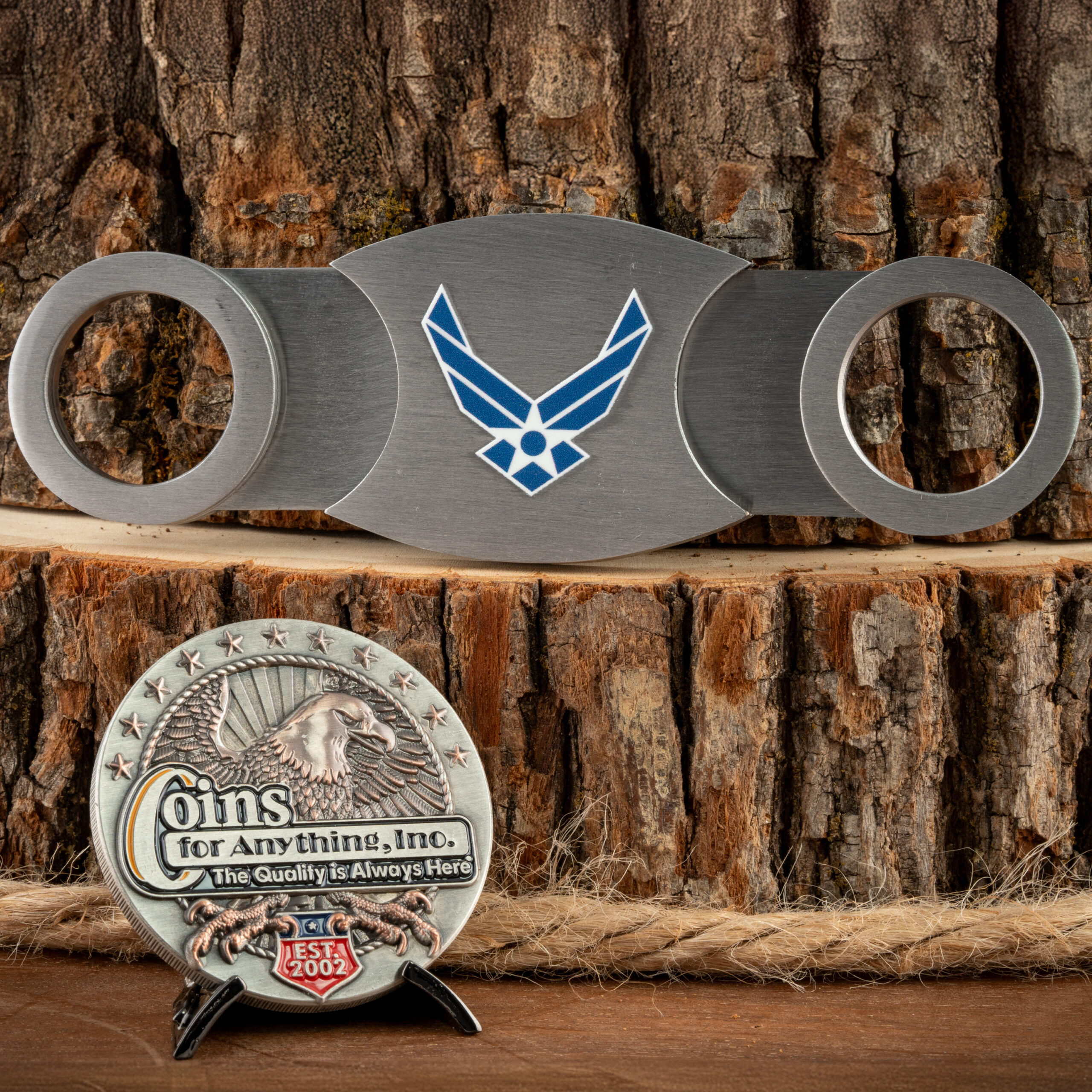 Introducing our premium stainless steel Air Force cigar cutter, designed to honor the distinguished service of our nation’s armed forces. This closed-back cutter offers a seamless, clean cut every time, ensuring your cigar experience is nothing short of exceptional.