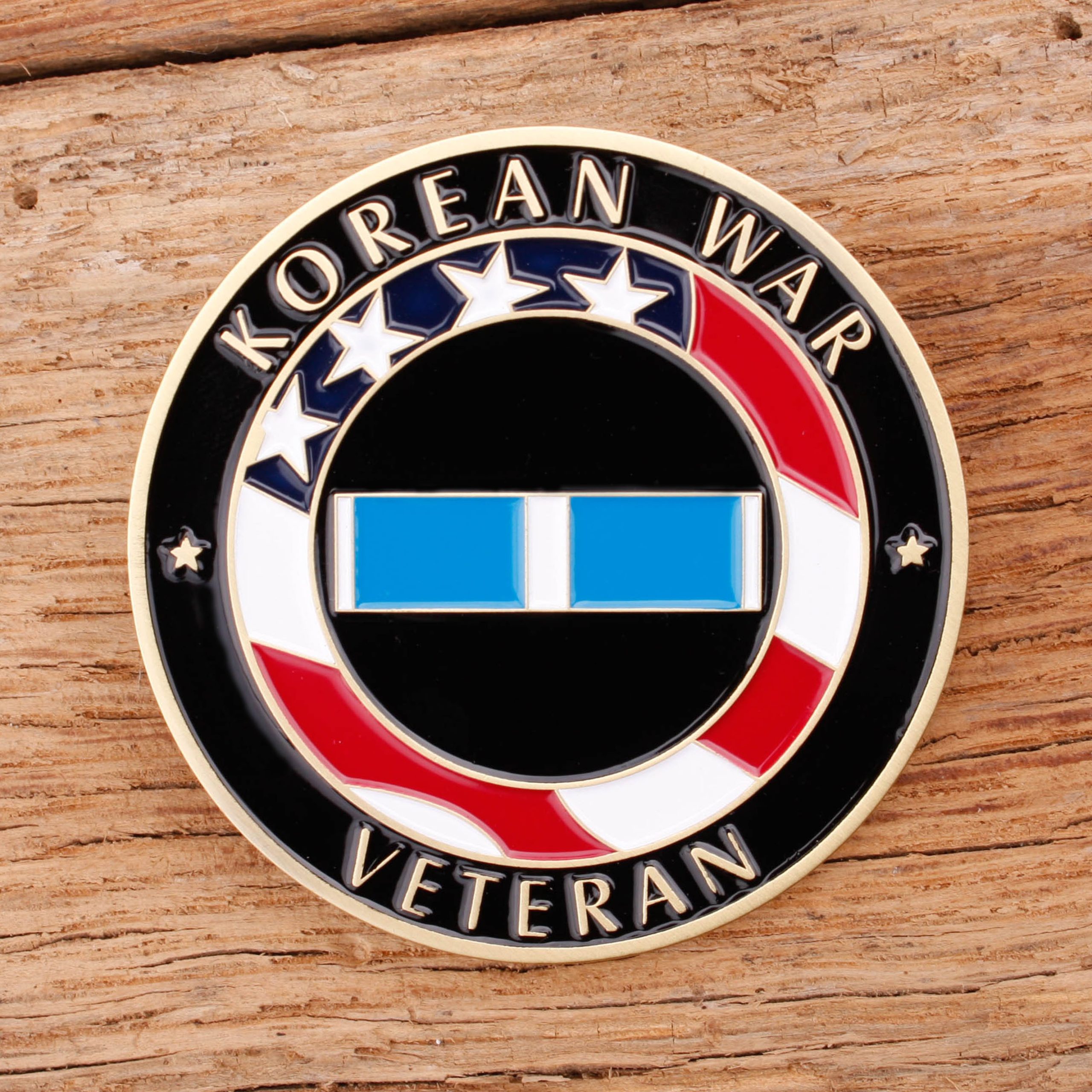 This U.S. Korean war memorial coin is designed to recognize the military service of Korean War Veterans. With the Korean Service Ribbon, this coin celebrates American heroes who battled for freedom by safeguarding American interests overseas. This Korean War challenge coin is suitable for presentation or to be carried as a keepsake by the recipient or the recipient’s family and comrades-in arms. This coin upholds the significance of service in the Korean War.