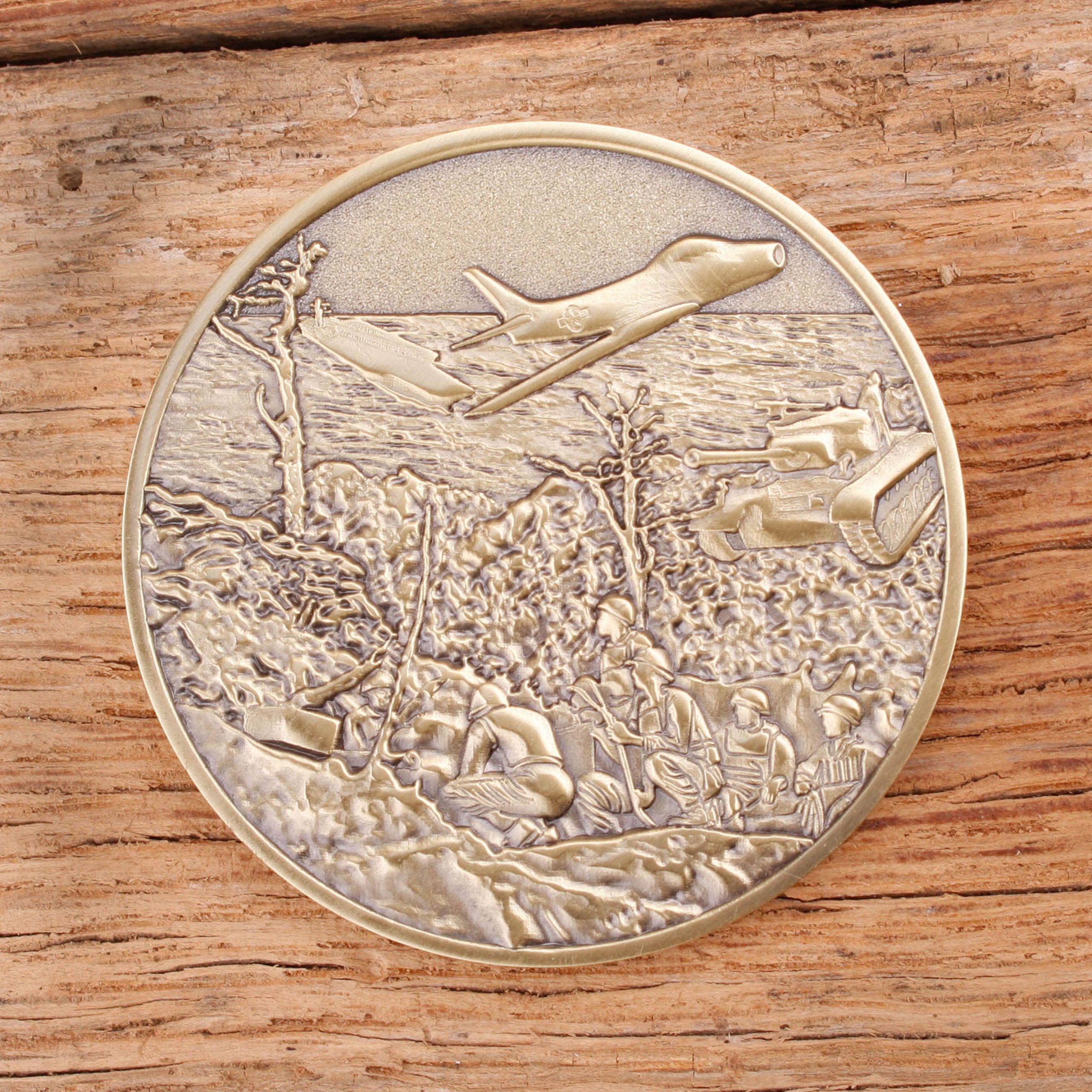 This Korean War Challenge coin is dedicated to the U.S. military service members who fight for freedom and credits their commitment to their sworn duty in dangerous and inhospitable environments.