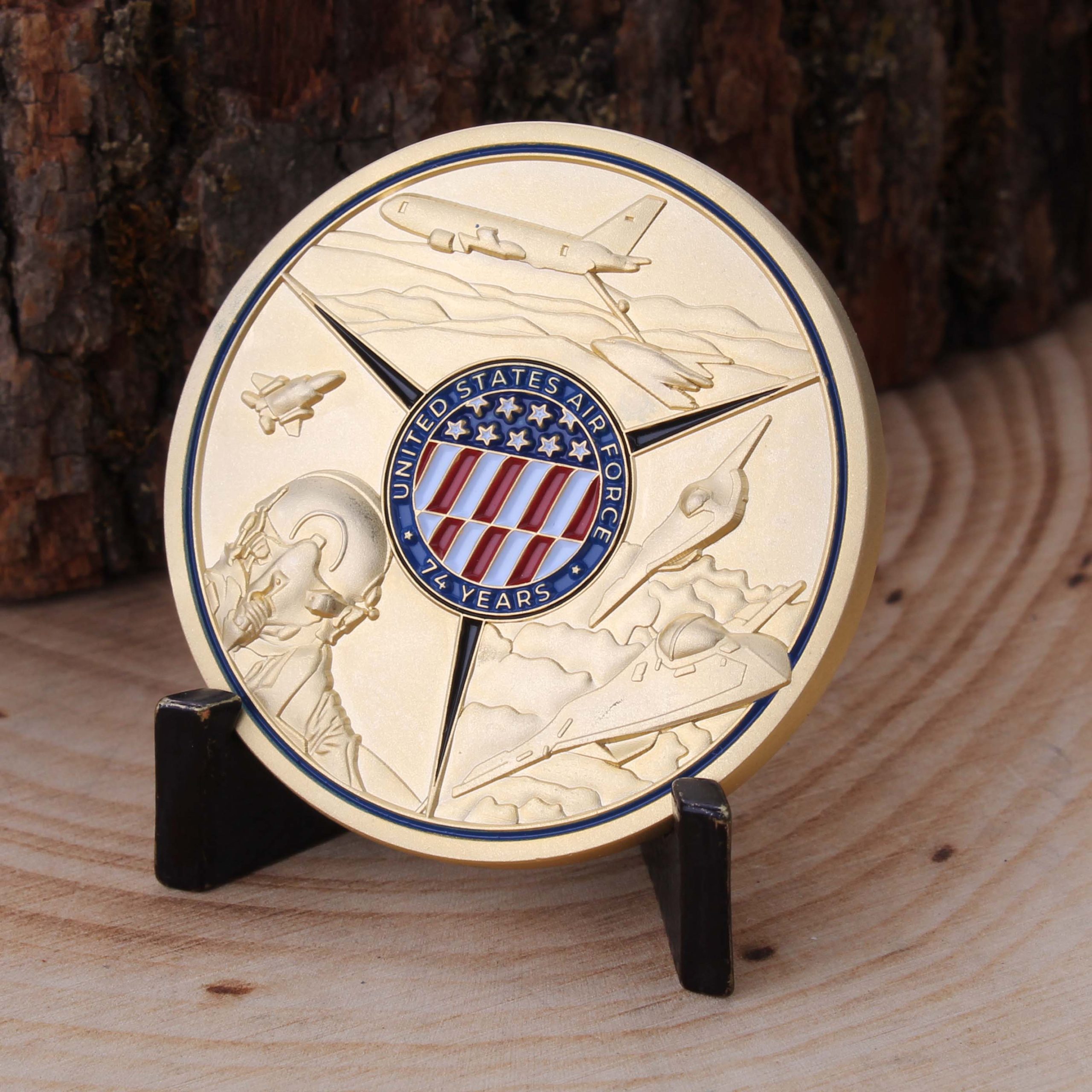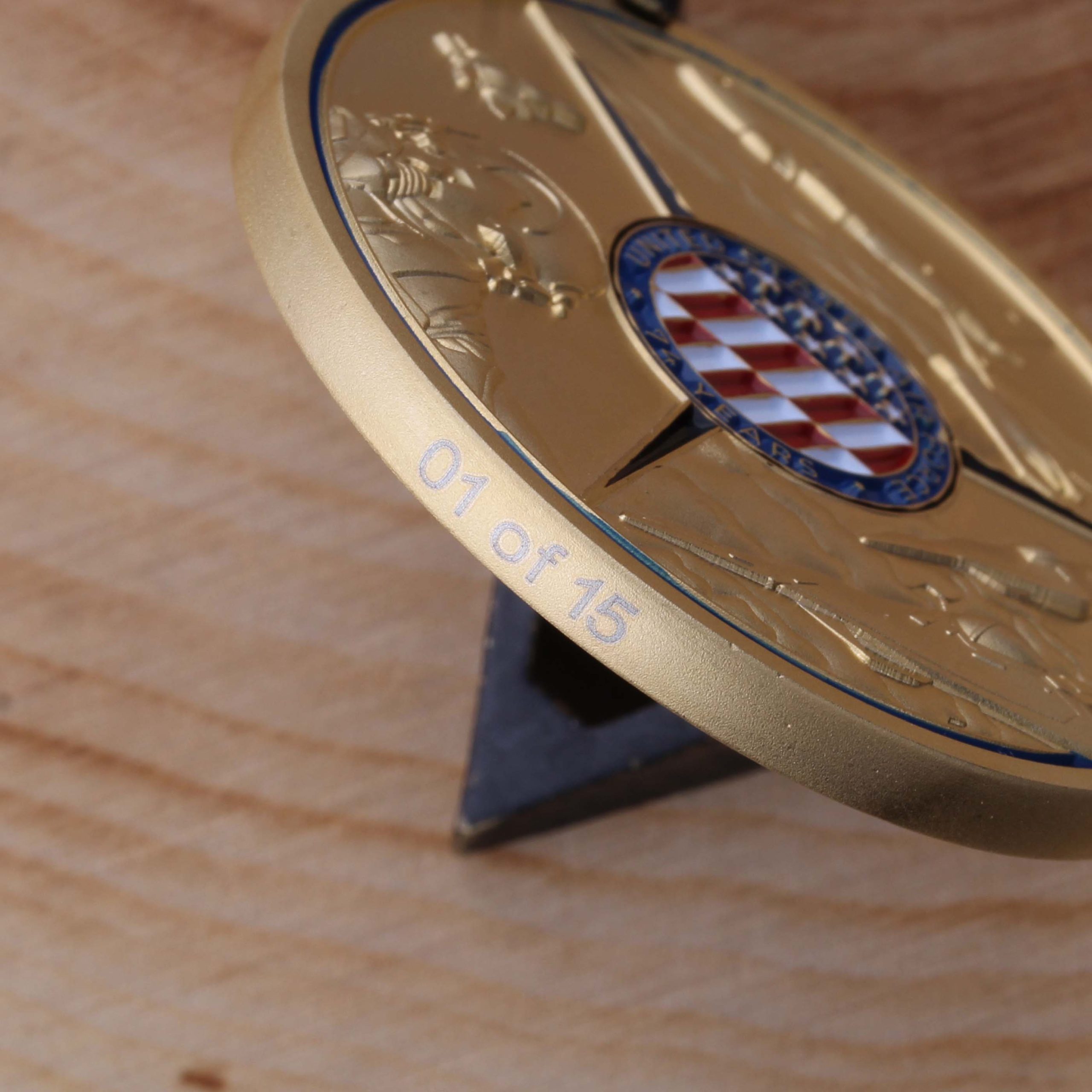 This satin gold finish Limited Edition US Air Force 2021 Birthday Challenge Coin is 1 of only 15 produced in the world with etched numbering and a certificate of authenticity.