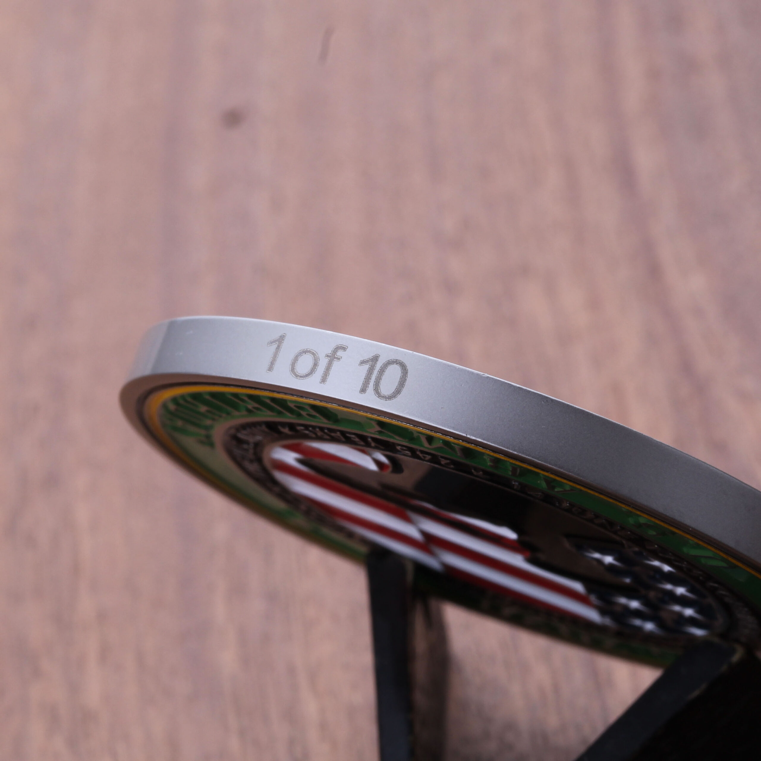 This limited edition 2020 U.S. Army Birthday Ball Challenge Coin is 1 of only 10 produced in the world with a satin silver finish, etched numbering, and certificate of authenticity.  The front features images of soldiers in action with a M1 Abrams tank, Apache Attack Helicopter, and an infantryman with the text “In Honor Of All Who Served”. The other side of the coin includes the words, “245 Years, 14 June 1775 Continental Congress Authorizes Creation of the U.S. Army”. The text “U.S. Army Birthday” is proudly displayed with 1775-2020 along the top.
