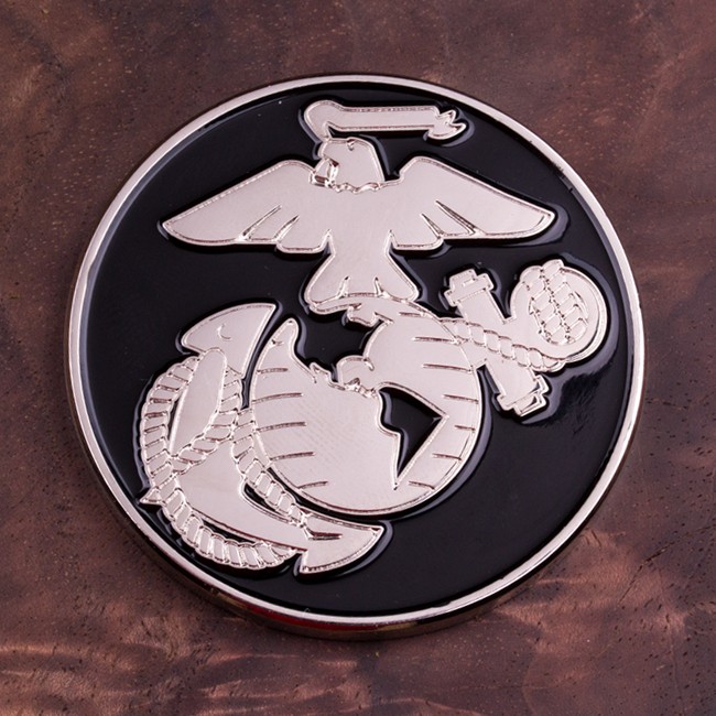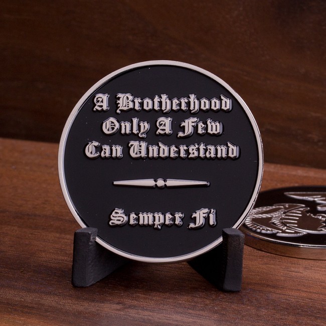 This striking 1.75″ challenge coin features a beautiful Eagle, Globe, and Anchor in shiny nickel on a black background. The reverse side of the coin has the words, “A Brotherhood Only A Few Can Understand” and the motivating Marine Corps motto, “Semper Fi” at the bottom. Makes a great gift for ANY supporter of the U.S. Marines!