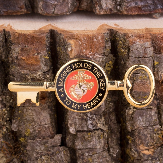 This Marine Corps Girlfriend Holiday Gift Pack makes a great USMC girlfriend gift any time of the year. It comes complete with a scarlet and gold I Love My Marine Lanyard, 1.25″ long shiny gold A Marine Holds the Key to My Heart lapel pin, and a 1.75″ Military Angel Coin with a blank area on the back for personalized engraving.