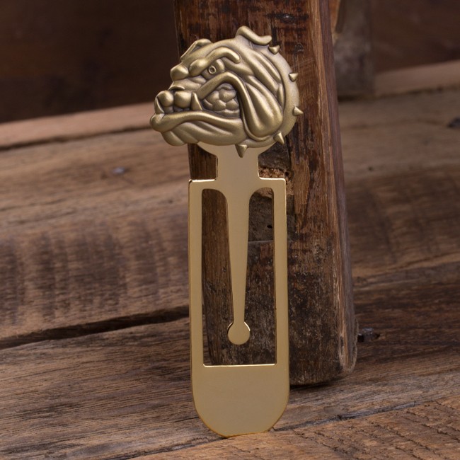This 1.25” wide x 2.75″ long antique brass bookmark features a menacing 3D bulldog plated with antique brass, atop a shiny gold bookmark attachment. The perfect Marine Corps accessory to mark any page!