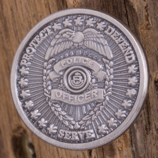 The Police Officer Lapel Pin makes the wearer’s intention clear: to protect, defend, and serve. The design centers around a 3D badge with the words “Police Officer” and an eagle on top. This antique silver lapel pin measures 0.75” in diameter, and comes complete with a butterfly clutch backing.