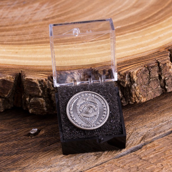 This antique silver tie-tack measures 0.75” in diameter, and makes the wearer’s intention clear: to protect, defend, and serve. The design centers around a 3D badge, complete with the words “Police Officer” and an eagle on top. The Police Officer Tie-Tack arrives in its own plastic case.
