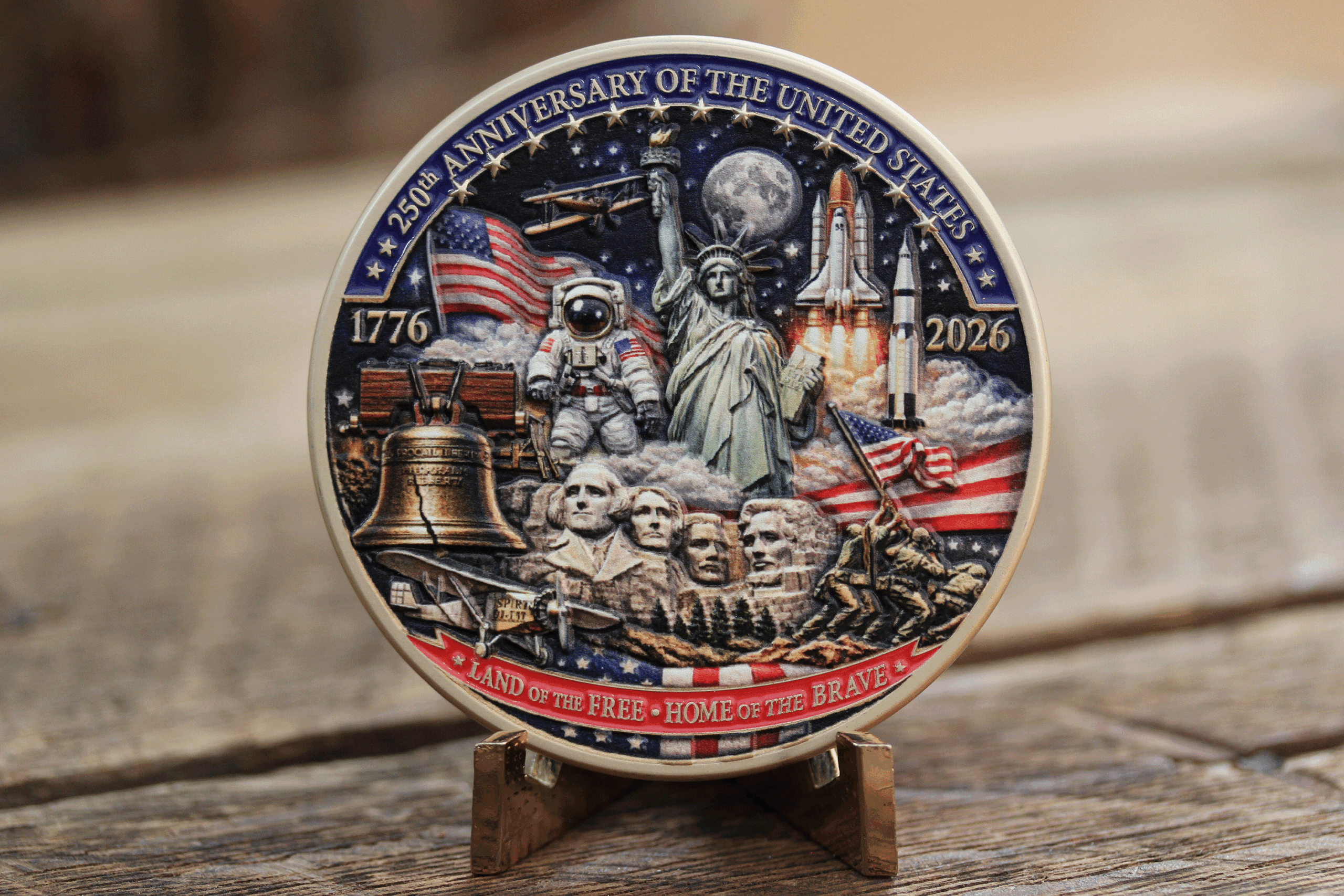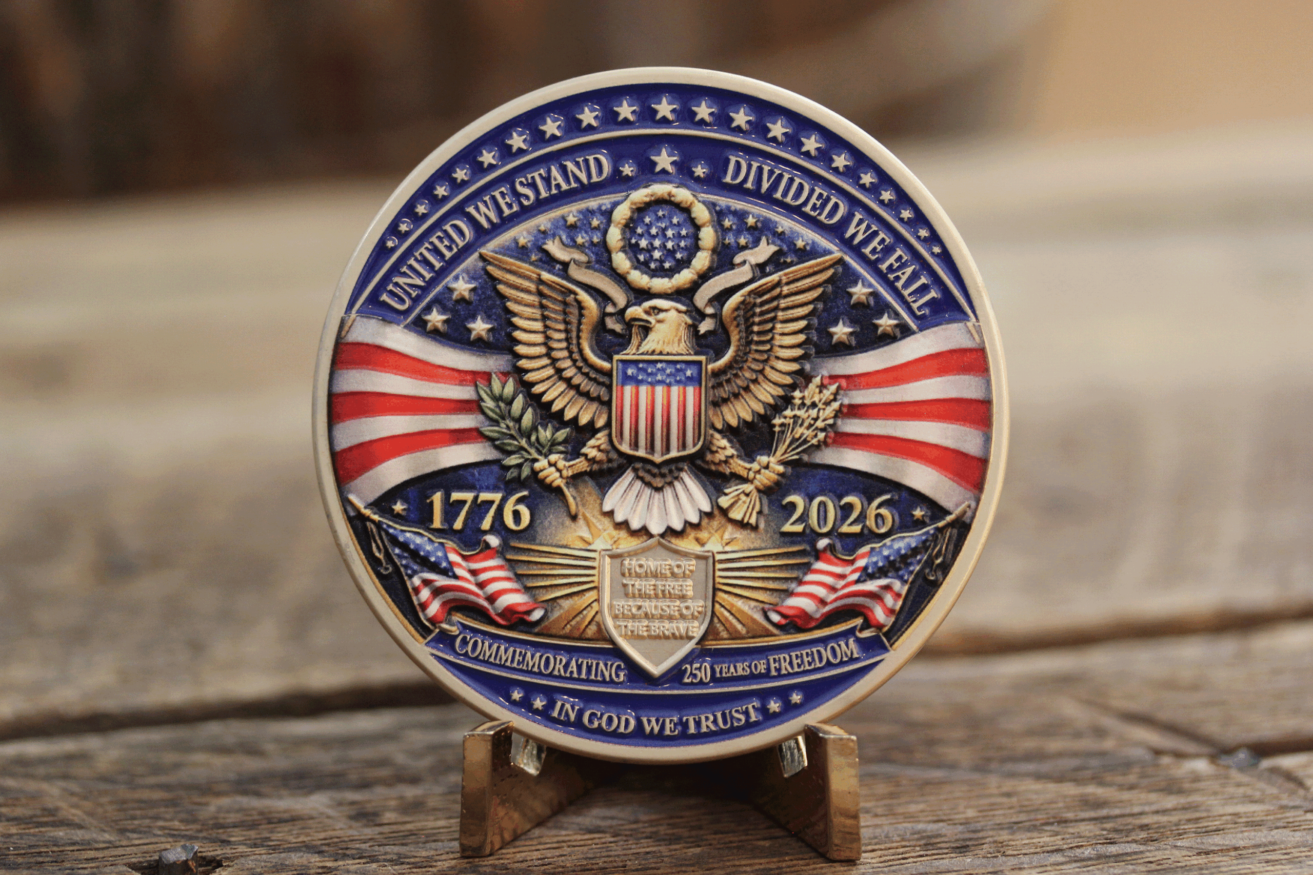 Honor 250 years of American history with this exceptional 2.5-inch Ultra Limited Edition challenge coin. Designed to embody the strength, heritage, and enduring spirit of the United States, this piece stands out with bold detail and a commanding presence worthy of the milestone it represents.