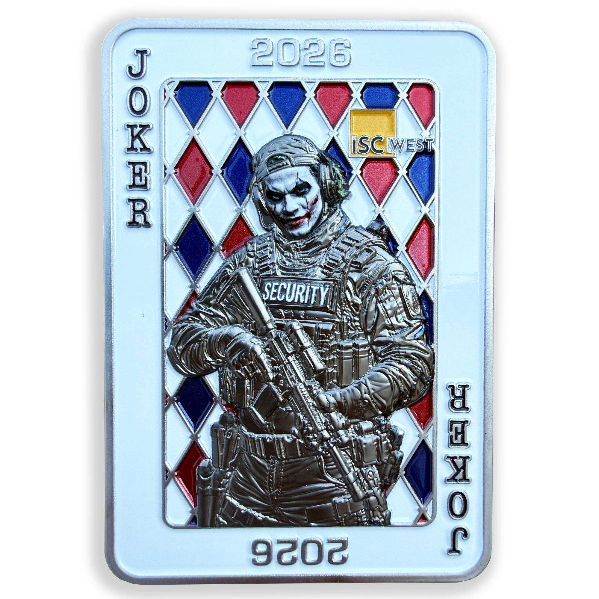 This Limited Edition Las Vegas Joker Challenge Coin, is minted in satin silver finish and 3.5-inch size, serves as a distinguished memento of this year’s ISC West. Through the latest UV printing technology, each detail is sharply brought into focus, creating a unique design to help define this moment in history.
