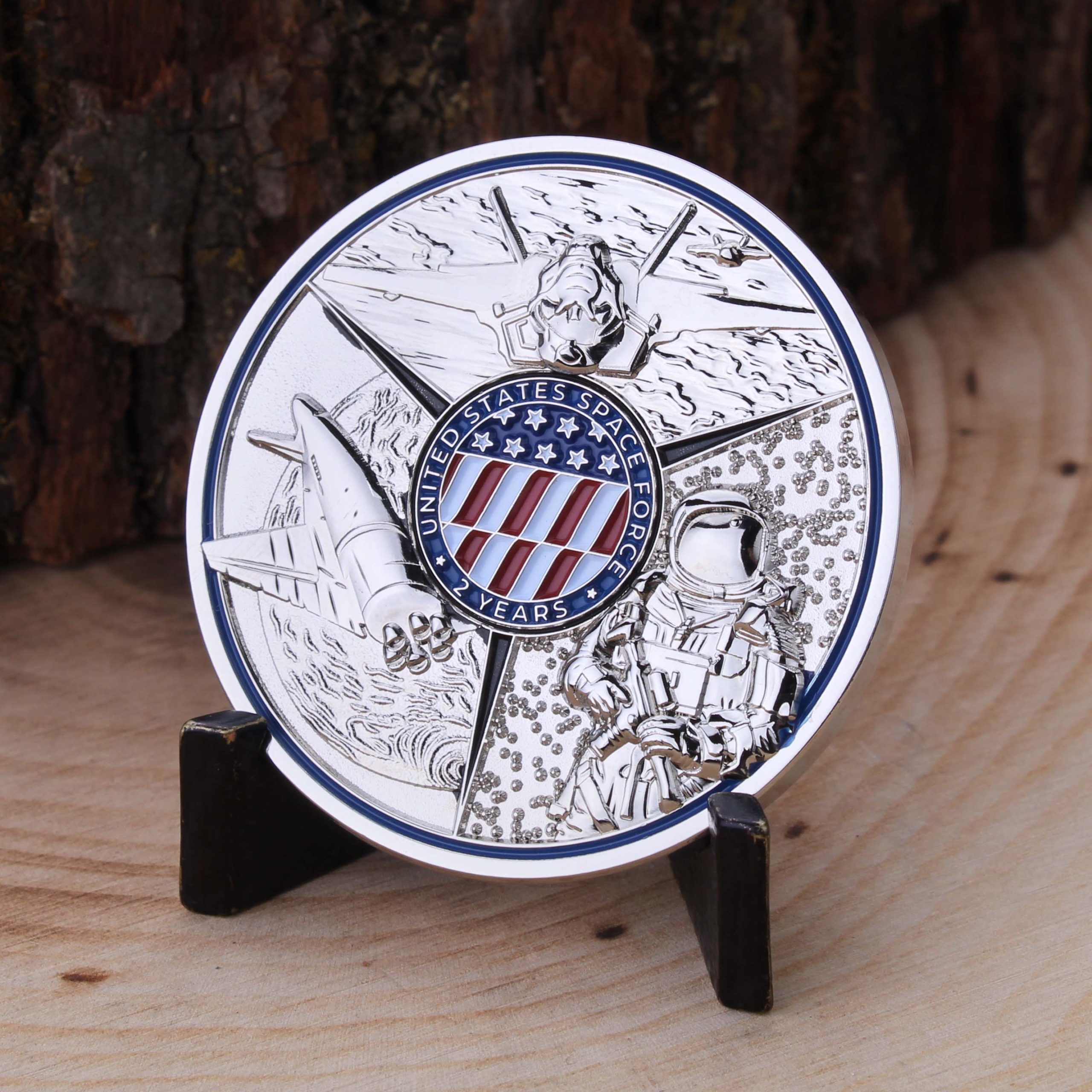 The center of the coin has the American flag, circled by the words “United States Space Force 2 Years”
