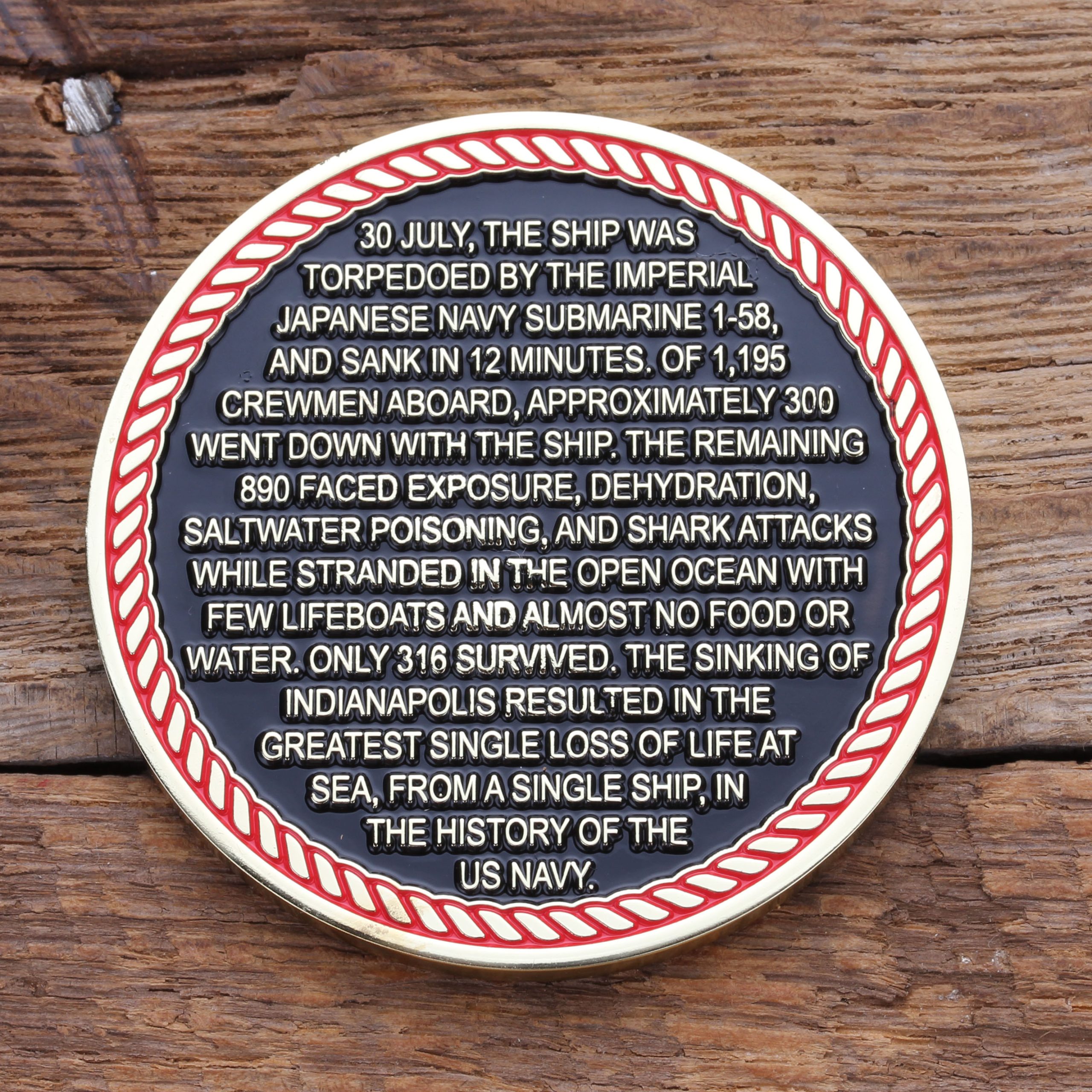 Commemorate your visit to the USS Indianapolis National Memorial with this memorable WWII challenge coin. This also makes a great gift for friends and family who have respect for those who served!