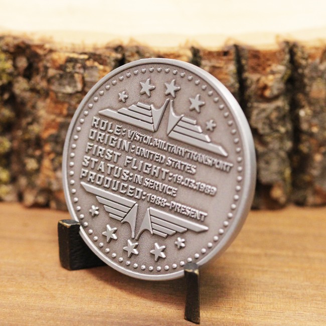 The Bell Boeing V-22 Osprey is currently used by the U.S. Marines and the Air Force in operations around the world. This sharp-looking commemorative coin is part of Coins For Anything’s American aircraft challenge coins series. Collect the coin you like most or get all of them. The back of the coin features highlights of each aircraft.